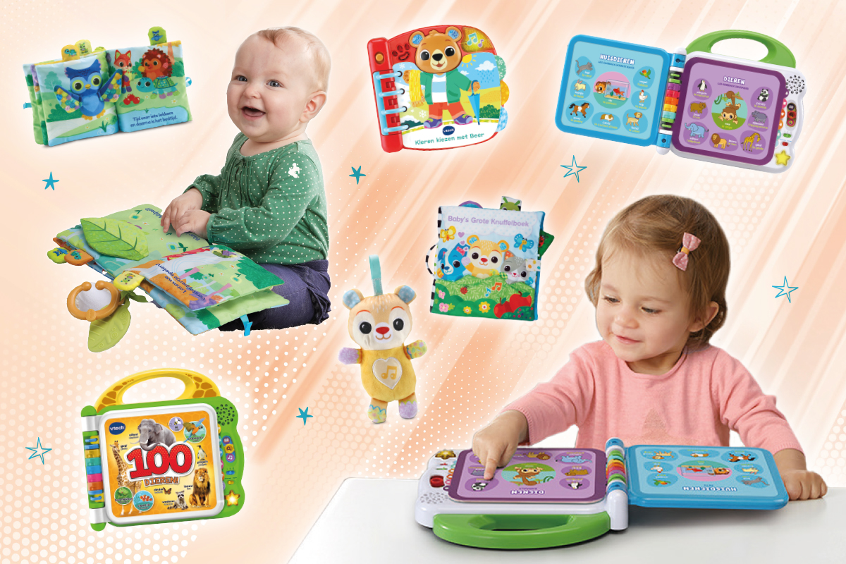 Veel kindjes beginnen vaak met geluidswoordjes, denk hierbij aan ''boem'' en ''oh-oh''. Ook zullen ze dingen benoemen naar het geluid wat ze maken. Een auto is bijvoorbeeld ''toet toet'' en een koe is ''boe''. Boekjes met afbeeldingen van dieren of voertuigen je na kunt doen zorgen voor veel speelplezier! Met het Mijn Eerste 100 Woordjes boekje kunnen kleintjes zowel geluiden als woorden leren van dieren, kleuren, eten en nog veel meer! Met een tik op de afbeelding hoor je het bijbehorende geluid of woordje, superleuk én leerzaam!