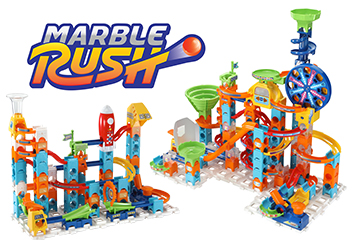 Marble Rush is de nieuwste knikkerbaan sensatie van VTech! Bouw verschillende banen d.m.v. de bijgesloten bouwplannen of laat je fantasie de vrije loop en bouw jouw eigen knikkerbaan. Laat de knikkers naar beneden rollen door middel van trechters en geheime doorgangen en lanceer ze vervolgens weer naar boven. Niet is te gek met Marble Rush!