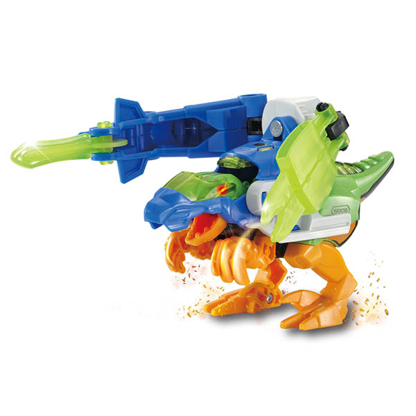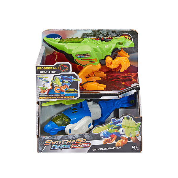 Vic Velociraptor kan met de helikopter worden gecombineerd tot een krachtige dino met pantser!