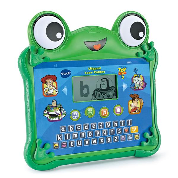 Speel met Lilypad, het nieuwe speelgoed van Bonnie uit Toy Story 5! Deze tablet laat kinderen kennismaken met letters, letterklanken, woorden, cijfers en de karakters van Toy Story. Speel uitdagende spellen, maak muziek, druk op de karaktertoetsen om leuke berichten te ontdekken en beweeg de pootjes om de ogen van Lilypad te draaien. Met de originele stem van Lilypad en een standaard om de tablet op een tafel te zetten.