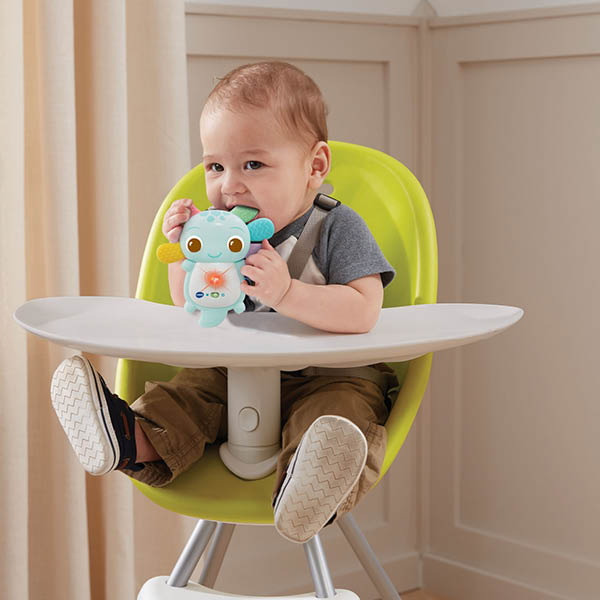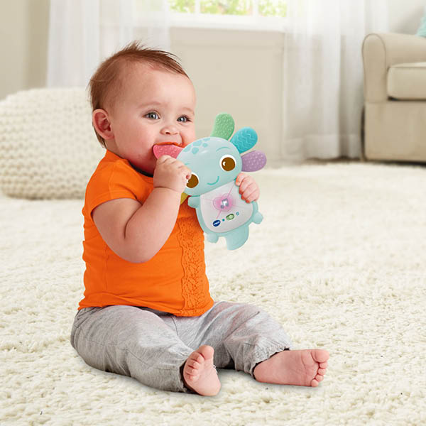 Speel met dit schattige monstertje voor volop speelplezier! De 6 kleurrijke, siliconen kieuwen dienen als bijtring en verlichten de pijn bij doorkomende tandjes en de verschillende texturen stimuleren de tastzin. De hart-toets activeert vrolijke zinnetjes, grappige geluiden, gezongen liedjes, melodietjes en licht op in verschillende kleuren!