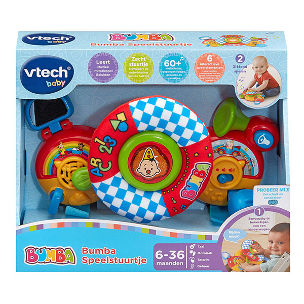 Doe je gordel maar om! We gaan op ontdekking met het Bumba Speelstuurtje! Dit stuurtje bevat 6 interactieve speelelementen die kleintjes laten kennismaken met eenvoudige verkeersregels, tegenstellingen en muziek! Het drukken op de toetsen en het bewegen van de verschillende speelelementen activeert vrolijke reacties van Bumba en Bumbina, draagt bij aan de ontwikkeling van de motorische vaardigheden en prikkelt de fantasie. Rijd maar mee met Bumba en zijn vriendjes!