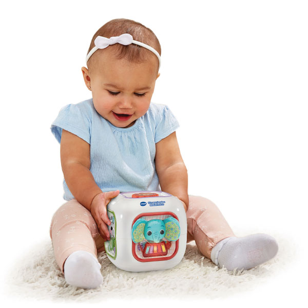 Laten we muziek maken! Druk op de toetsen van deze muzikale kubus en maak kennis met dieren, muziekinstrumenten en (klassieke) muziek. Voeg instrumenten of geluiden toe aan een melodie, luister naar de vrolijk gezongen liedjes en ontdek de verschillende texturen van de kubus. Elke kant is interessant!
