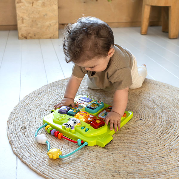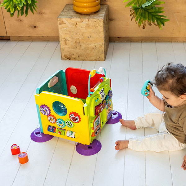 Speel met de losse panelen of verbind ze op verschillende manieren en maak tijdens drie speelstanden kennis met dieren, kleuren, muziek en nog veel meer! De verschillende beweegbare onderdelen bevorderen de ontwikkeling van de motorische vaardigheden en de gezongen liedjes en vrolijke zinnetjes stimuleren de taalontwikkeling!